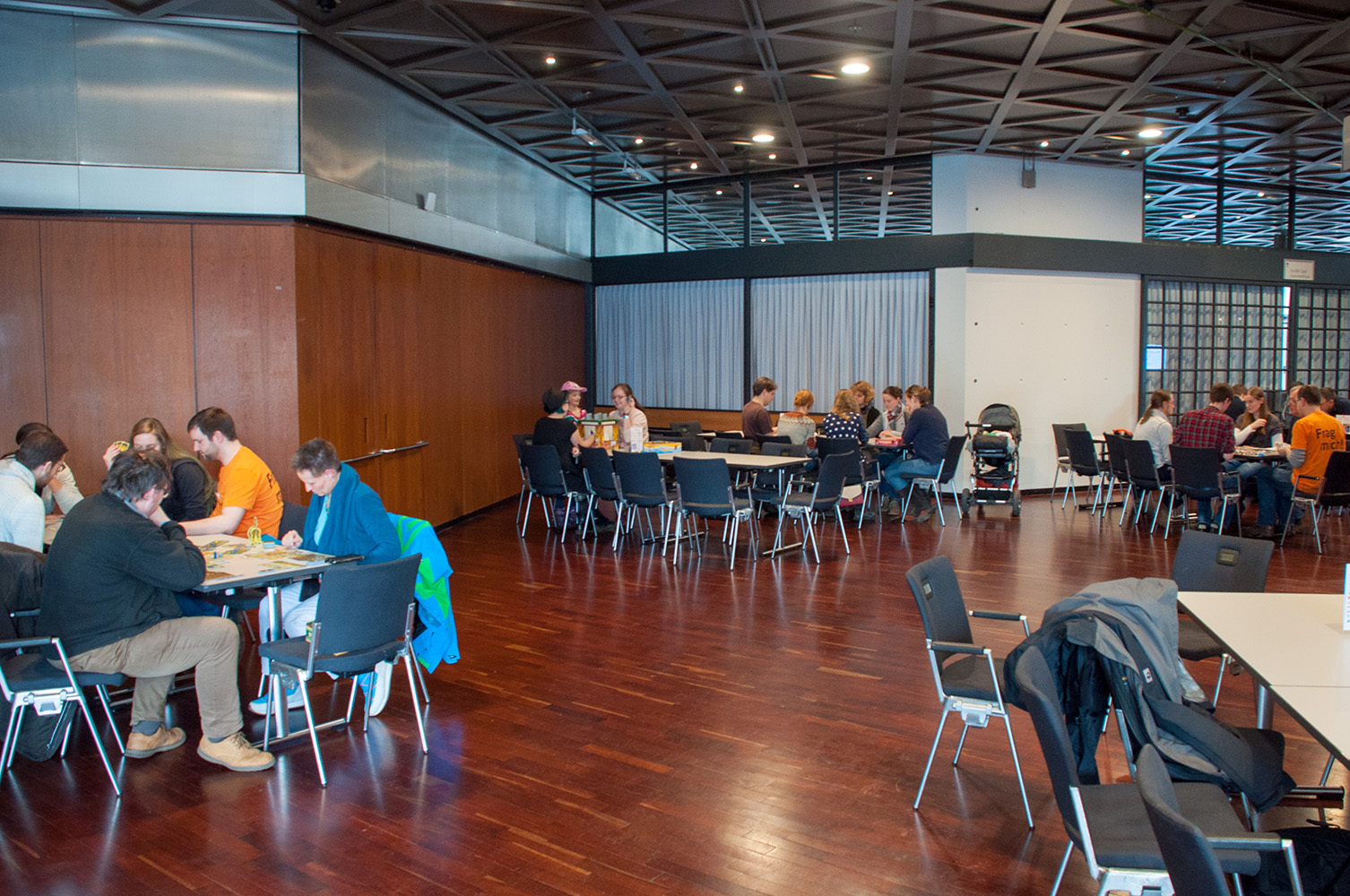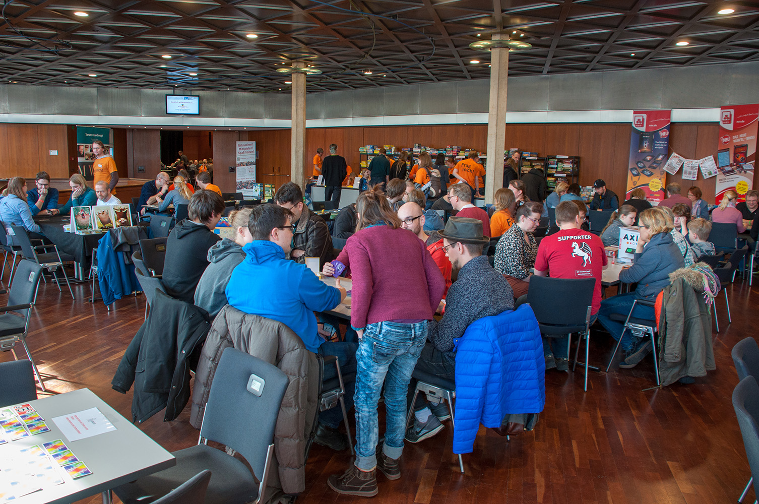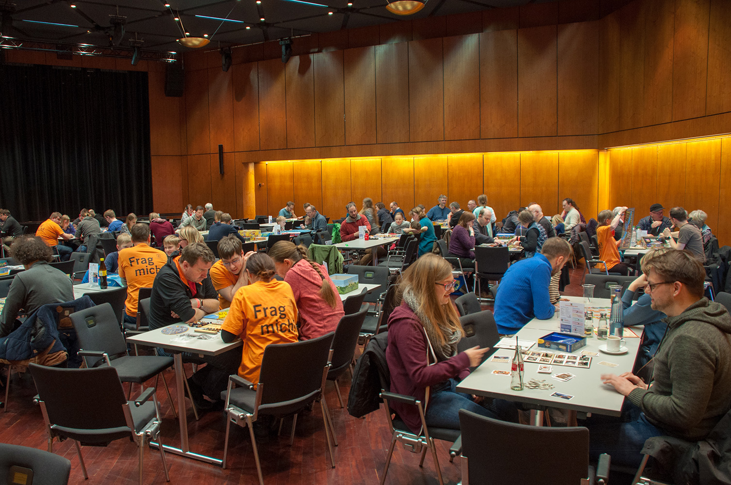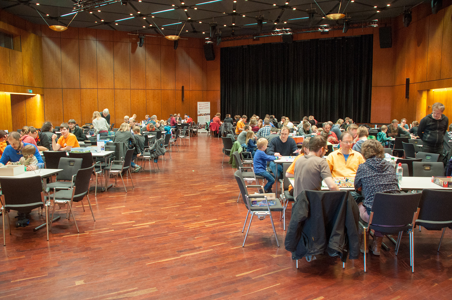Anläßlich unseres Jubiläums (die 10. Ausgabe) hatten wir die Fläche auf 1.300 m² vergrößert und 130 Tsche angeboten. Auch diese waren zu Spitzenzeiten fast komplett ausgelastet mit erneut knapp 800 Besuchern, womit die Besucheranzahl trotz des extremen Wintereinbruchs am Samstag und komplett fehlender Ankündigung in der Lokalpresse besser war als anfangs befürchtet. Die Eingangskontrolle verlief ohne Problem und die Garderobe wurde gut angenommen. Nächstes Jahr werden wir wieder in der Stadthalle sein und freuen uns schon auf Euch – kommt vorbei und spielt mit!