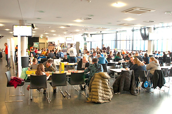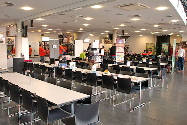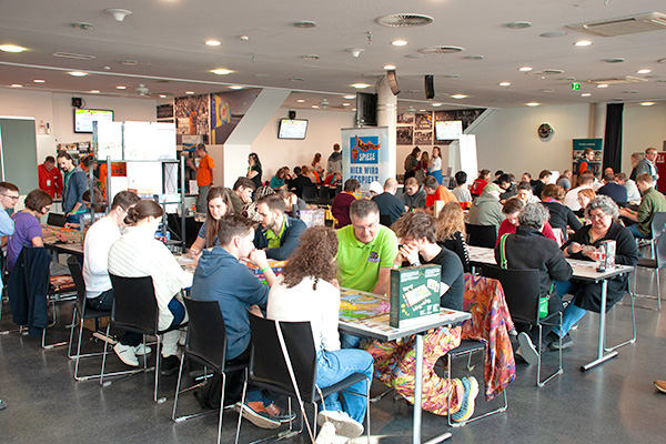 Da sich alle Spieletische und die Spielausleihe in einem großen Saal befinden, können wir Ihnen als Spieleverlag oder Spieleverkäufer eine hervorragende Gelegenheit bieten, sich als Aussteller zu präsentieren und mit den Besuchern in Kontakt zu kommen.